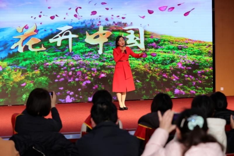 活动现场气氛热烈,节目亮点纷呈。市音舞协女声合唱团以清澈和声演绎红色经典歌曲《绒花》,搭配适配背景视频,饱含深情的演绎凸显坚韧纯洁的精神内核,为活动拉开精彩序幕。青年歌唱演员陶波激昂唱响正能量歌曲《新征程》,铿锵旋律与振奋歌词相得益彰,传递新时代奋进豪情。相城老年大学团队萨克斯齐奏《我的祖国》恢弘动听,悠扬乐声流淌着对祖国的赤诚热爱。三句半《移风易俗巾帼行》以诙谐表演传递文明新风。此外,“党的女儿”巾帼宣讲员张瑛带来《太阳花暖心红娘织就幸福网》,通过生动PPT,声情并茂地讲述基层巾帼服务群众的暖心故事,传递出女性的担当力量。演出最后,市三八红旗手,市音舞协副主席杨燕压轴登场,倾情献唱《花开中国》,以悠扬歌曲融合时代旋律,以“花开”意象生动展现女性在社会与家庭中的多元价值,赢得观众阵阵掌声。